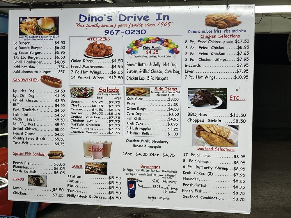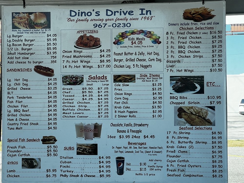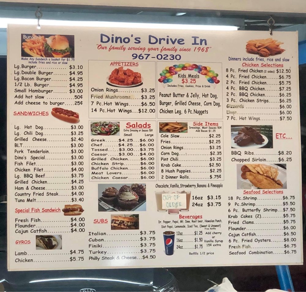 Dino's Drive-In Menu